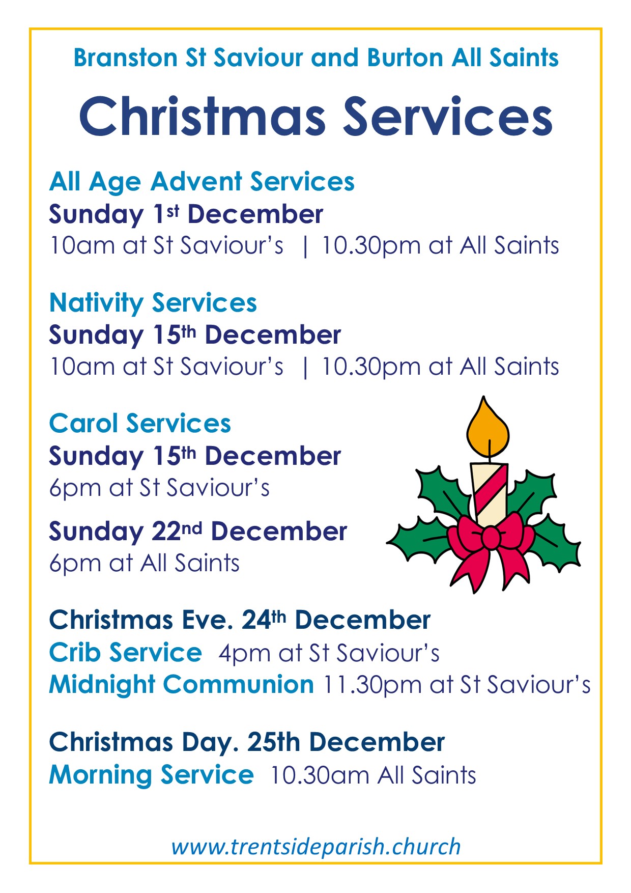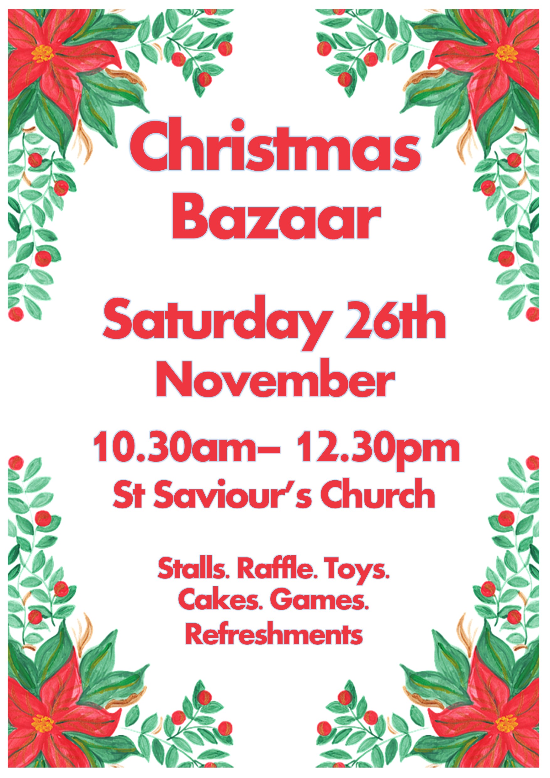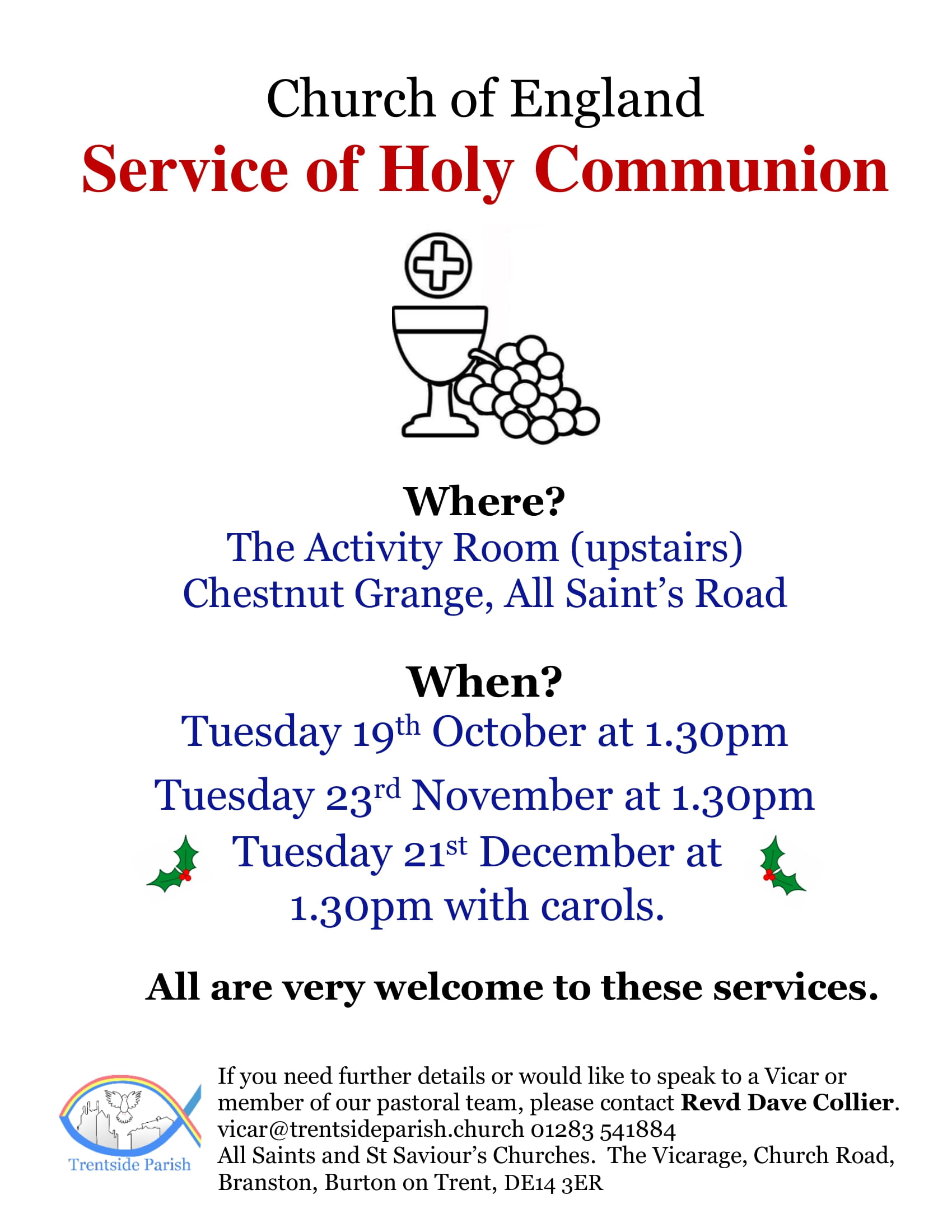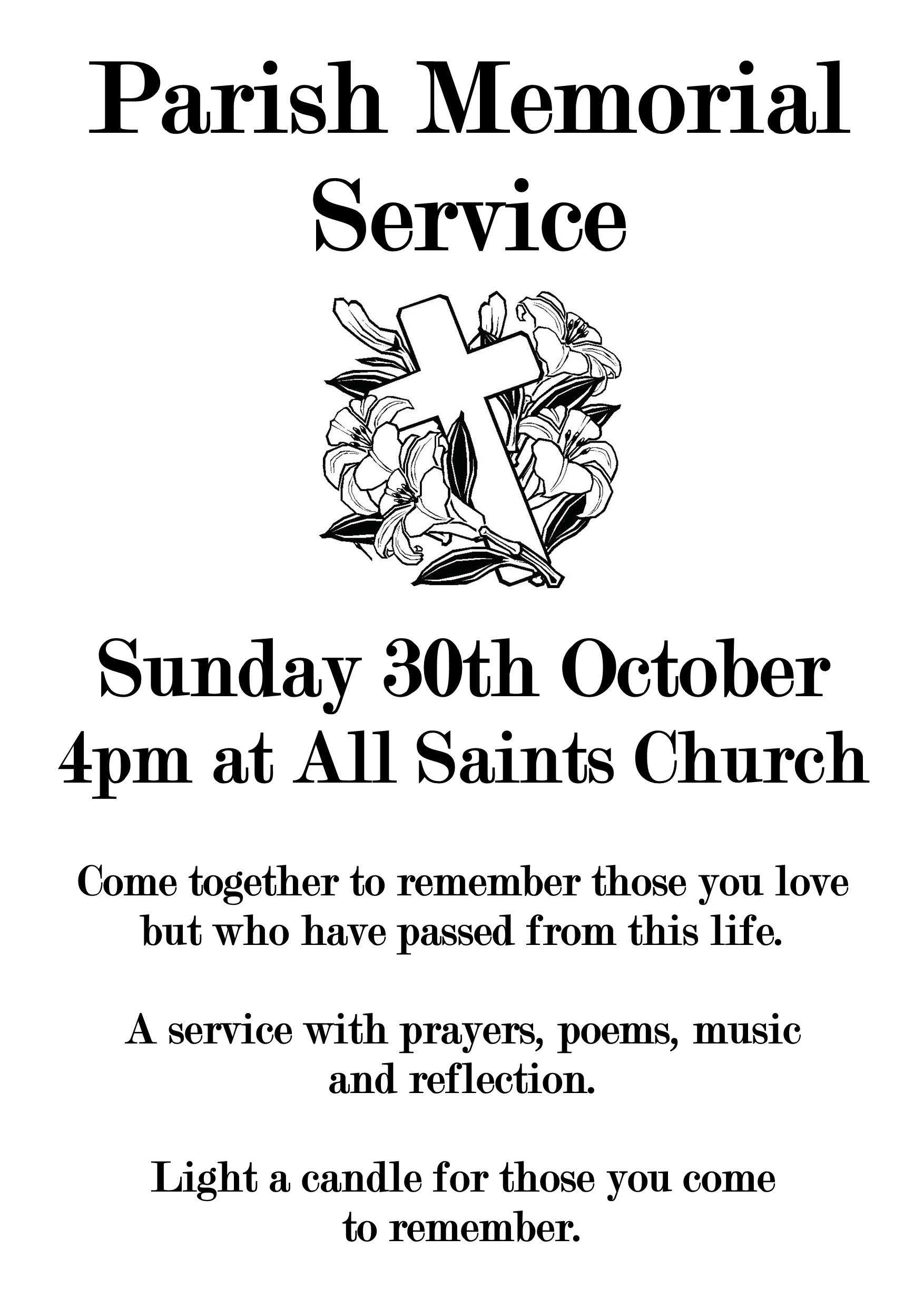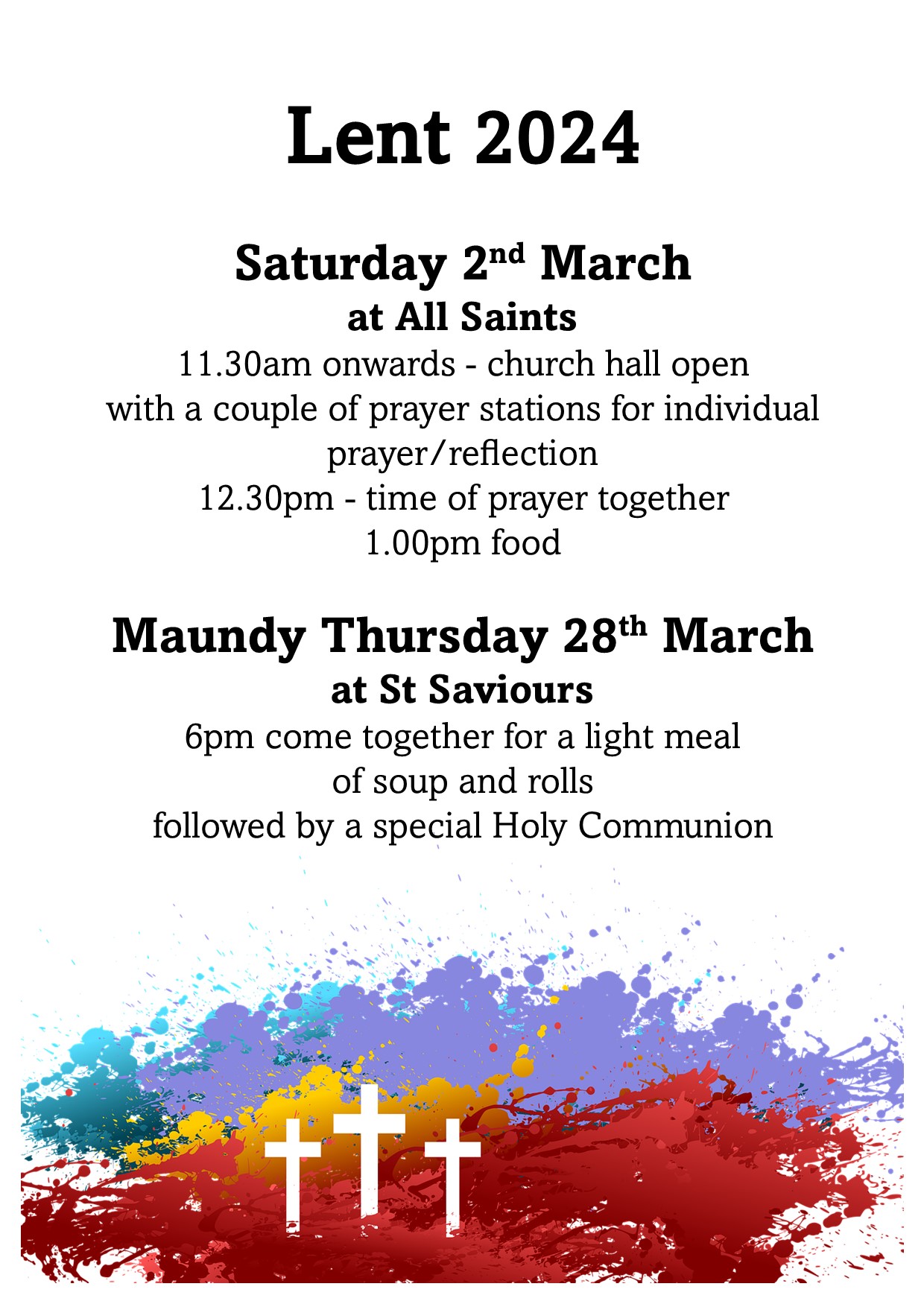 For this week’s notice sheet visit out ‘Weekly Worship’ page.Upcoming Events Regular Events News and updates Remembrance and Armisticeby Parish Office | 13th November 2024 | News | 0 CommentsIt is our honour every year to gather with those from our community to...Read MoreHome and study groupsby Parish Office | 6th November 2024 | News | 0 CommentsBuilding faith and friendships through prayer, study and fellowship. New...Read MoreYouth Craft Groupby Parish Office | 17th April 2024 | News | 0 CommentsMeeting every four weeks at All Saints church hall for crafts, fun, fellowship...Read MoreChristmas Bazaarby Parish Office | 7th November 2022 | News | 0 CommentsCome along to our Christmas Bazaar at St Saviour's church on Saturday 30th...Read MoreChristmas Services 2024by Parish Office | 24th November 2021 | News | 0 CommentsChristmas Service dates and times. 2019Read MoreFriendship Groupby Parish Office | 16th August 2021 | News | 0 CommentsFRIENDSHIP GROUP Every Tuesday at St Saviours from 2pm until 4pm. Everyone is...Read MoreAll Saints Craft Groupby Parish Office | 14th May 2021 | News | 0 CommentsCraft group. All welcome!Read MoreOpen House Toddler Groupby Parish Office | 30th January 2020 | News | 0 CommentsRETURNING 7th JUNERead MorePast Events Peace Concert 28th July 2019 Garden Party and Dog Show at The Vicarage. June 2019 Homefront Jumble Sale HARVEST CELEBRATIONS! Mothering Sunday Flowers at St Saviour's Baptism in the Sea! Holiday Club 2017 Easter Sunday Sunrise Service